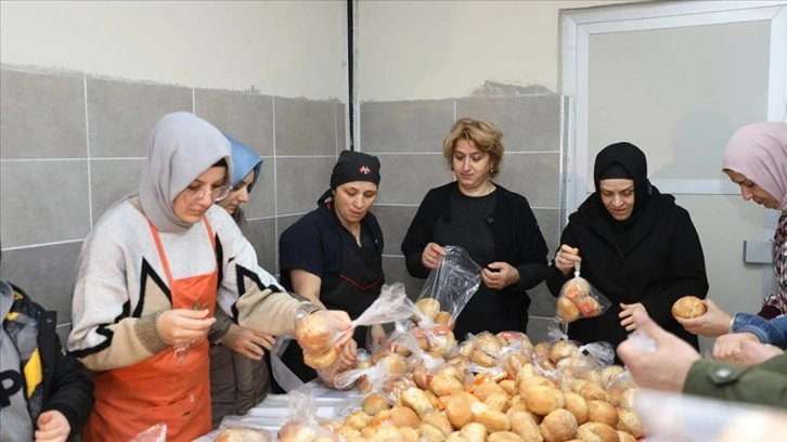 Gönüllü öğretmen ve öğrenciler, okulun fırın atölyesinde günde 10 bin küçük yuvarlak somun ekmek üreterek helvayla Valilik koordinesinde ihtiyaç duyulan bölgelere gönderiliyor.
