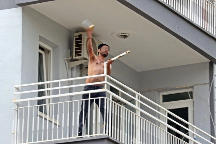 Polis, itfaiye ve sağlık ekiplerini alarma geçiren olay, Kepez ilçesi Kuzeyyaka Mahallesi 2541. Sokak üzerindeki 3 katlı apartmanın en üst katında yaşandı. Edinilen bilgiye göre, bir süre önce Almanya'dan Antalya'ya yerleşen Ramazan C. (38), bilinmeyen bir nedenden ötürü sinir krizi geçirdi. Balkona çıkıp eşyaları dışarı fırlatan Ramazan C.'yi gören komşuları, durumu 112 Acil Çağrı Merkezine bildirdi. İhbarla birlikte belirtilen adrese çok sayıda polis, itfaiye ve sağlık ekibi geldi. Polis ekipleri, sokağı araç ve yaya trafiğine kapatırken, Ramazan C., evdeki mutfak camlarını kırmaya başladı.