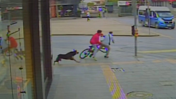Öte yandan kaza anı çevredeki iş yerinin güvenlik kamerasınca kaydedildi. Kayıtlarda, sahipsiz köpeğin kovalaması sonucu kaçan bisikletli çocuğun hızla yayaya çarpması, çevredekilerin yere düşen adama ve çocuğa yardım etmesi görülüyor.