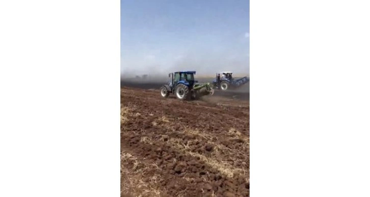 Şanlıurfa'nın Hilvan ilçesinde biçerdöverden çıkan kıvılcımla çıkan yangına köylüler onlarca traktörle müdahale etti.