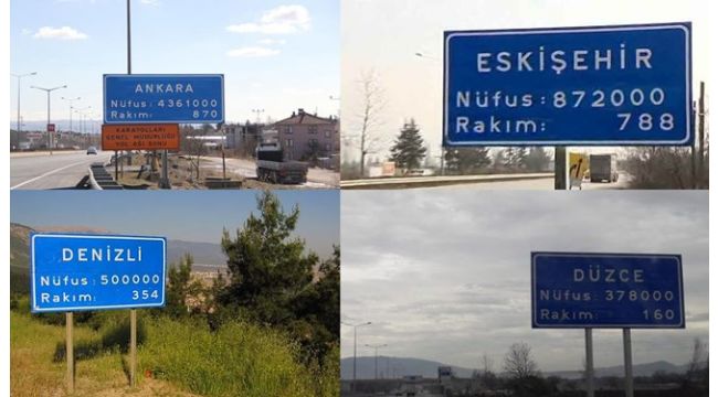 Karayolları Genel Müdürlüğü, her yıl Türkiye İstatistik Kurumu'nun (TÜİK) verileriyle nüfusun değişmesinin ardından 81 il ve 911 ilçenin giriş çıkışlarında bulunan tabelaları yeniden düzenliyor.