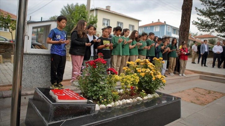 Törende Aybüke öğretmenin çiçeklerle süslenmiş mezarı sulandı, Kur'an-ı Kerim okunmasının ardından dua edildi.