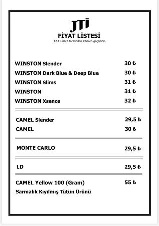 12 Kasım2022 zamlı sigara fiyatları listesi şöyle;