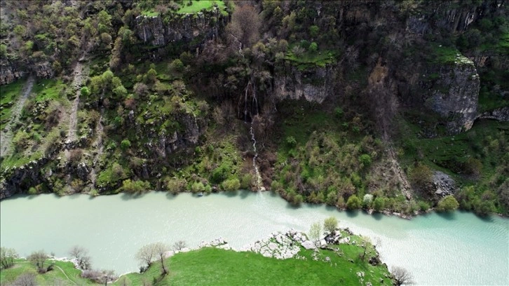 Karların erimesiyle oluşan akarsu yataklarında yer alan ve güzel manzaralar oluşturan irili ufaklı şelaleler dron ile havadan görüntülendi.