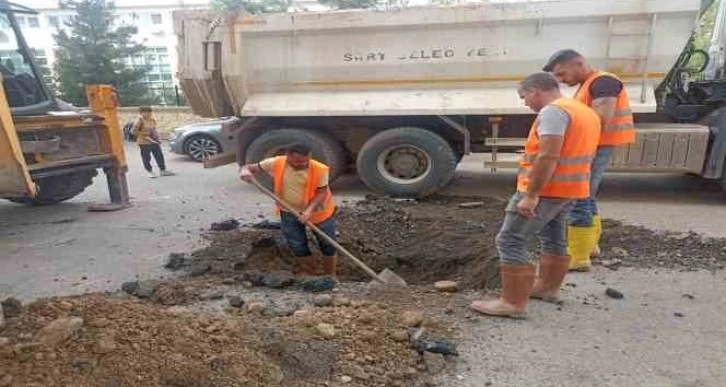 Siirt Valisi ve Belediye Başkan Vekili Osman Hacıbektaşoğlu'nun talimatıyla Siirt Belediyesi, Su ve Kanalizasyon İdaresi Müdürlüğü (SİSKİ) ekipleri, şehrin tüm cadde ve sokaklarında altyapı hatlarının temizlik, bakım ve onarım çalışmalarına devam ediyor. Bugün de kent merkezi Bahçelievler Mahallesi 1426. Sokakta içme suyu arızası ihbarı alan ekipler, su arızasının olduğu bölgeye giderek arızanın giderilmesi için çalışma başlattı. Ekipler, arızaya anında müdahale ederek sorunu giderdi.