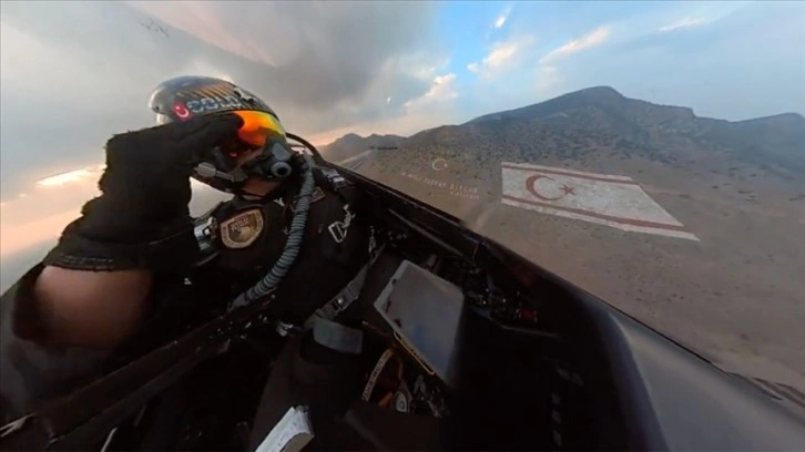 Videoda, SOLOTÜRK'ün Girne, Akdeniz ve Beşparmak Dağları semalarında yaptığı uçuştan kokpit görüntüleri yer aldı.