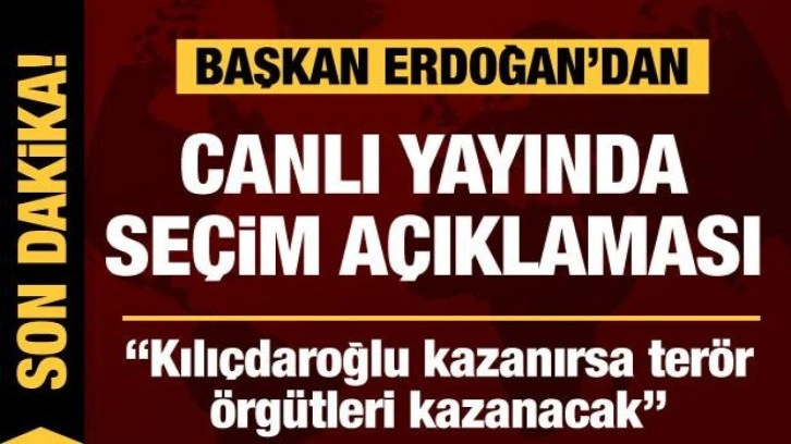 Cumhurbaşkanı Recep Tayyip Erdoğan, CNN Türk ve Kanal D ortak yayınında gündeme dair açıklamalarda bulunuyor. Cumhurbaşkanı Erdoğan, "Kılıçdaroğlu kazanırsa terör örgütleri kazanacak" dedi.