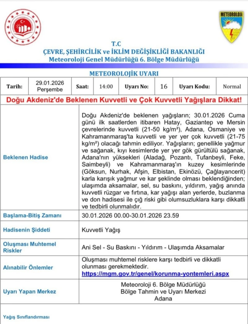 - Ani Sel ve Su Baskınları: Özellikle alçak kesimlerde yaşayan vatandaşların dikkatli olması gerekiyor.