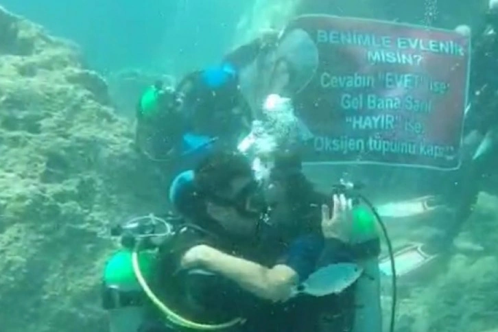 Marmaris İlçe Emniyet Müdürlüğüne bağlı yunus motorize ekiplerde görevli polis memuru Ahmet Uysal, kendisi gibi motorlu yunus polisi olan Kübra Berber ile arkadaşlıklarını evliliğe taşımak istedi. Uysal, İçmeler Mahallesi'nde dalış merkezinde çalışan arkadaşlarından evlilik teklifi organizasyonu için yardım istedi.