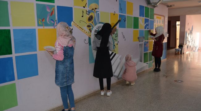 İslahiye ilçesindeki Pınarbaşı İlk ve Ortaokulu görsel sanatlar öğretmeni Ayşegül Gemli, bir yıl önce 4 katlı okulun koridorları ve diğer görselliği bulunan alanlara resimler çizmek amacıyla okul yönetimiyle Minik Ressamlar Projesi'ni hayata geçirdi. Yeni tip koronavirüs (Kovid-19) salgınının başlamasıyla okullar geçici olarak yüz yüze eğitime ara verilince 9'u Suriyeli 15 öğrenciyle başlanan projeye ara verildi.