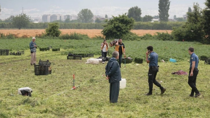 Yıldırım ilçesi Sakarya Mahallesi'nde yağışın etkili olduğu sırada tarım işçisi kadınların maydanoz kestiği tarlaya yıldırım düştü.