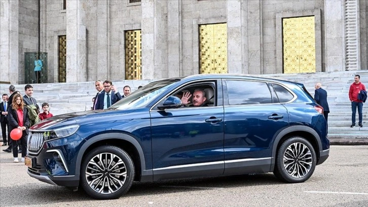 Daha sonra Şeref Merdivenleri önünde bulunan makam aracı Togg'un şoför koltuğuna oturan Şentop, beraberinde MHP Kütahya Milletvekili Ahmet Erbaş ve MHP Ankara Milletvekili Nevin Taşlıçay ile Meclis kampüsünde tur attı.