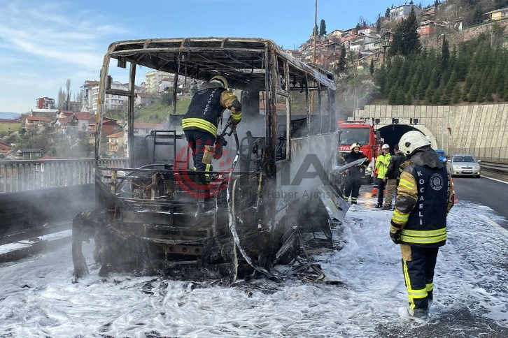 Olay, TEM Otoyolu Kocaeli geçişi İzmit Yenidoğan Viyadüğünde meydana geldi. Edinilen bilgiye göre, Çayırova Belediyesi'ne ait 41 TP 347 plakalı minibüsün sürücüsü R.K., seyir halindeyken araçtan dumanlar çıktığını fark etti. Sürücü, önce aracı emniyet şeridine çekip sonrasında içerideki yolcuları tahliye ederek, güvenli bir şekilde uzaklaştırdı. Dumanın yerini alevler almaya başlayınca minibüs adeta alev topuna döndü. Durum 112 Acil Çağrı Merkezi'ne bildirildi. Bölgeye itfaiye, sağlık ve polis ekipleri sevk edildi. Bölgeye gelen itfaiye ekipleri, yaptıkları müdahaleyle alevleri kontrol altına aldı. Trafikte olumsuzluk yaşanmaması ve geçişlerin güvenli sağlanabilmesi adına polis ekipleri de Ankara istikametinde yolu tek şeritten verdi. Karayolları Genel Müdürlüğü ekipleri ise yolun temizlenmesi ve sonrasında bir kaza yaşanmaması adına bölgede çalışmalarda bulundu. Alev topuna dönen minibüs kullanılamaz hale geldi. Minibüsün alev alev yandığı anlar, vatandaş kamerasıyla da görüntülendi.