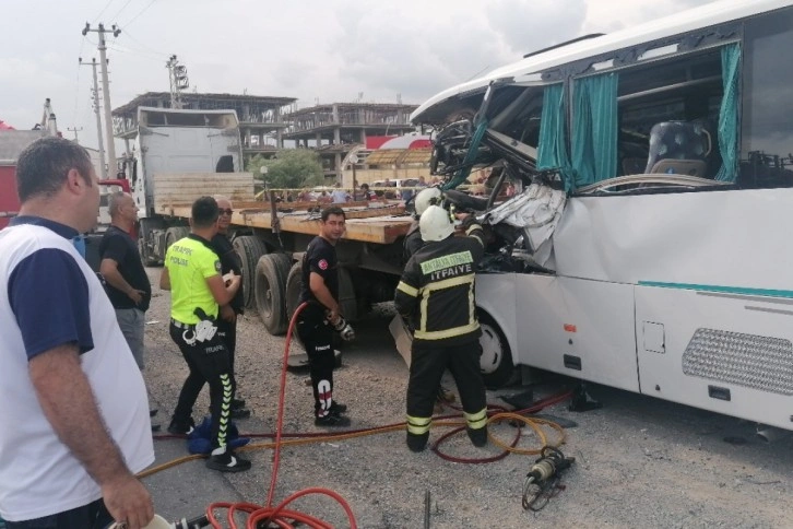 Kaza, bugün saat 16.30 sıralarında Manavgat ilçesi Ilıca Mahallesi'nde yaşandı. Edinilen bilgiye göre, Alanya'daki otellerden almış olduğu 33 Rus uyruklu turisti havalimanına götürmekte olan Nuri Okudan idaresindeki 07 BIC 869 plakalı tur midibüs, D-400 Karayolu Iılıca Mahallesi sınırları içinde yolun dışında park halindeki 07 GDK 46 çekici plaka, 07 AZK 83 dorse plakalı tıra arkadan çarptı. Midibüs sürücüsü Nuri Okudan araç ile tır dorse arasında sıkışıp hayatını kaybederken, Rus uyruklu 5 turist yaralı olarak Manavgat'taki çeşitli hastanelere kaldırıldı. İhbar üzerine olay yerine çok sayıda ambulans ve Antalya Büyükşehir belediyesi Manavgat İtfaiye birimi kurtarma ekibi yönlendirildi. Midibüsle dorse arasında sıkışan sürücü için ekipler midibüsün ön bölümü keserken, hafif şekilde yaralanan turistlerden bazıları ellerinde buz kalıplarıyla darbe alan yerlerine uygulama yaptı. Yara almadan kurtulan turistler, olay yerine çağrılan başka araçlarla yollarına devam etti.