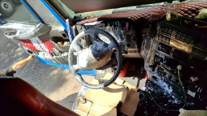 Aracın lastiklerini de bıçakla patlatan kalabalık, tırdaki ticari malzemeleri barındıran kolileri yere atarak tekmeledi.