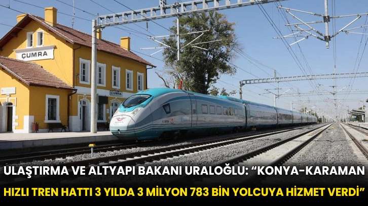 Ulaştırma ve Altyapı Bakanı Abdulkadir Uraloğlu, Konya-Karaman Hızlı Tren hattının açılışının 3’üncü yılı dolayısıyla yazılı bir açıklama yaptı. Bakan Uraloğlu, Konya-Karaman Hızlı Tren hattının 8 Ocak 2022’de Cumhurbaşkanı Recep Tayyip Erdoğan’ın teşrifleri ile hizmete açıldığını ve 3 yıldır hizmette olduğunu hatırlatarak, “Açıldığı günden bu yana 3 milyon 783 bin yolcuya hızlı, güvenli ve konforlu ulaşım hizmeti verdik. Marmara, İç Anadolu ve Akdeniz bölgeleri arasında hızlı tren bağlantısı kuran hattımız ile vatandaşlarımıza büyük bir kolaylık sunduk” dedi.