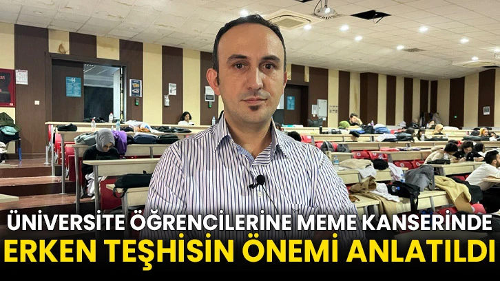 Aytekin, Tıp Fakültesi Amfi Salonu'nda düzenlenen programda, Farkındalık Ayı'nda meme kanserine dikkati çekmek için öğrencilerle bir araya geldi.