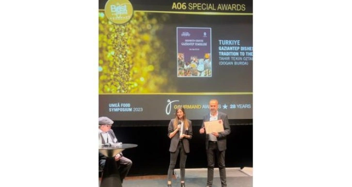 Dünya genelinde kitap oskarları olarak bilinen ve İsveç'te düzenlenen Gourmand World Cookbook Awards 2023'te, ünlü şef Tahir Tekin'in yazdığı "Gelenekten Geleceğe Gaziantep Yemekleri" kitabı 2 ayrı kategoride ödül kazandı.