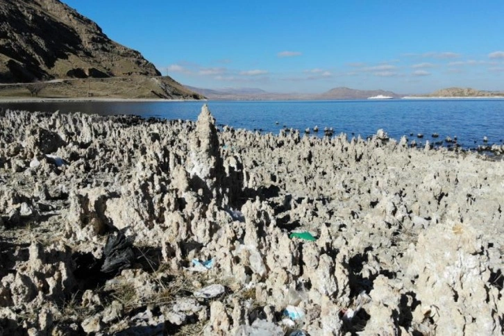 Dünyanın en büyük sodalı gölü olan Van Gölü'nde, iklim değişikliğine bağlı yaşanan kuraklık nedeniyle su çekilmesi devam ediyor. Özellikle son yıllarda dalış tutkunlarının ilgi göstermeye başladığı Van Gölü, bugünlerde su çekilme oranı ile gündemde. Van Gölü'nün Tatvan sahillerinde yaşanan su çekilmesi sonucu ortaya çıkan mikrobiyalitler de dikkatlerden kaçmıyor.