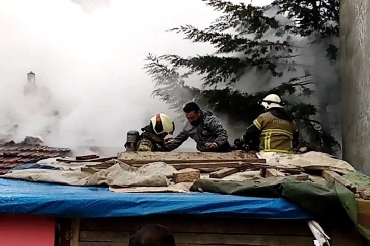 Edinilen bilgiye göre, saat 18.00 sıralarında Ertuğrulgazi Mahallesi Övgü Sokak'ta bulunan Mehmet Eren'e ait tek katlı evde elektrik kontağından yangın çıktı. Dumanı fark eden vatandaşların haber vermesi üzerine olay yerine itfaiye ekipleri sevk edildi. Alevlere yakından müdahale etmek için çatıya çıkan 3 itfaiye eri, çatının çökmesi ile evin içine düştü. Yara almayan itfaiye erleri, yaşadıkları tehlikeye rağmen yangın söndürme çalışmalarına devam etti. Yangın sonucu ev kullanılamaz hale geldi.