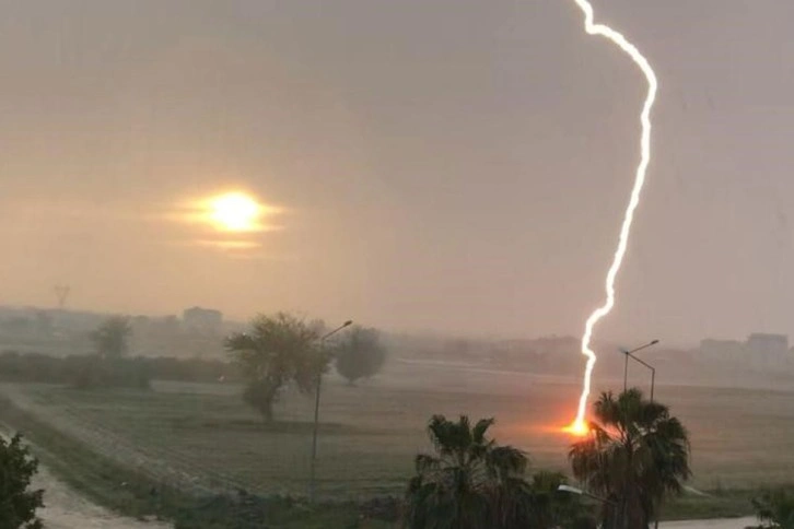 Kadirli ilçesinde geçtiğimiz gece gök gürültülü sağanak yağmur etkili oldu. Yağmurla birlikte yer yer dolu da etkili oldu. İlçeye bağlı Şehit Orhan Gök Mahallesi TOKİ Evleri'ne yakın bir noktadaki boş araziye yıldırım düştü. Yıldırımın düşme anı cep telefonu kamerasıyla anbean kaydedildi.