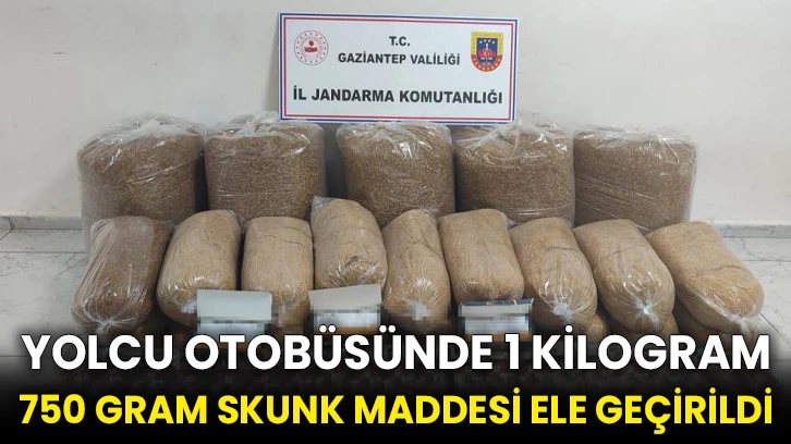 Gaziantep İl Jandarma Komutanlığı ve Cumhuriyet Başsavcılığı koordinesinde Nurdağı ilçesinde Huzur ve Güven Uygulaması yaptı. Durdurulan bir yolcu otobüsünde yapılan aramada S.A. isimli yolcuya ait valizde 1 kilogram 750 gram skunk maddesi, 25 gram kubar esrar, 500 kilogram kaçak tütün, 13 bin adet boş makaron, bin 595 TL suç geliri para ele geçirildi.