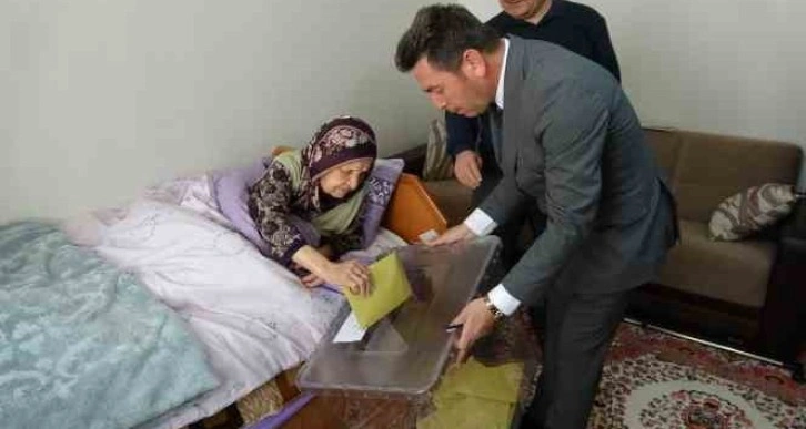 Kelami Çabuk ise 85 yaşındaki annesi Vesile Çabuk oy kullanmaya gidemediğinden dolayı seyyar sandık için seçim kuruluna müracaat ettiklerini söyleyerek, “Bugün görevliler geldi, annem evimizde oyunu kullandı. Teşekkür ederim” şeklinde konuştu.