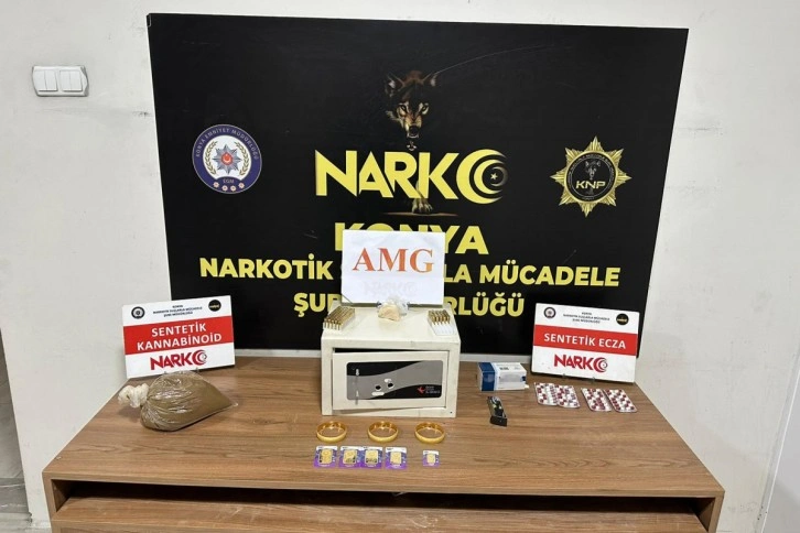 Edinilen bilgiye göre, Konya İl Emniyet Müdürlüğü Narkotik Suçlarla Mücadele Şube Müdürlüğü ekipleri, uyuşturucu satıcılarıyla mücadelesini sürdürüyor. Ekipler, Selçuklu ilçesi Yeni İstanbul Caddesi üzerinde şüphe üzerine durdurulan A.A.'nın üst aramasında bir miktar uyuşturucu madde buldu. Şahıs uyuşturucu maddeyi 16 plakalı bir otomobille dolaşan sürücüden satın aldığını belirtmesi üzerine araç bulunarak takibe alındı. Polis ekiplerini fark eden sürücü otomobilden 90 gram sentetik uyuşturucu maddesini atarak kaçmaya başladı. Kısa süreli kovalamacanın ardından yakalanan şüpheli M.K. gözaltına alındı. Şüphelinin evinde arama yapan polis ekipleri, çelik kasa içerisine saklanmış vaziyette 940 gram sentetik uyuşturucu maddesi, uyuşturucu madde yapımında kullanılan bir miktar ham madde, 56 adet uyuşturucu hap maddesi ve suçtan elde edildiği değerlendirilen toplam 568 bin lira değerinde altın ele geçirdi.