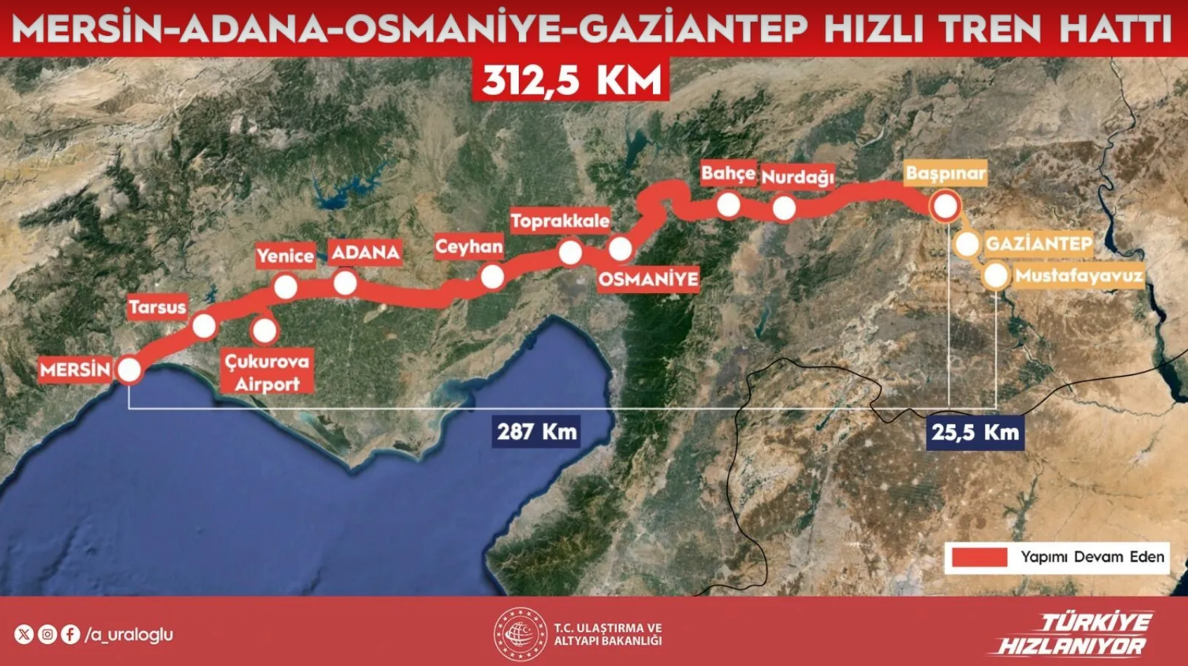 Ulaştırma ve Altyapı Bakanı Abdulkadir Uraloğlu tarafından yapılan açıklamaya göre projede yüzde 85 seviyesine ulaşıldı. Saatte 200 kilometre hızla hizmet verecek olan hat, hem yolcu taşımacılığında süreyi azaltacak hem de yük taşımacılığında önemli katkılar sağlayacak.