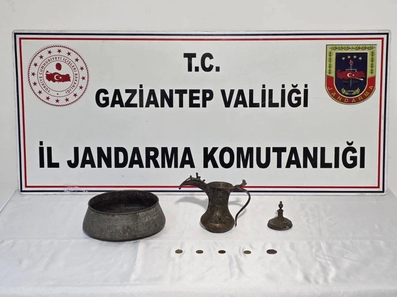 Gaziantep İl Jandarma Komutanlığı ekipleri, tarihi eser kaçakçılığının önlenmesine yönelik Gaziantep Cumhuriyet Başsavcılığı koordinesinde çalışma yaptı. Çalışma çerçevesinde, Nizip ve Şahinbey ilçelerinde icra edilen önleyici kolluk devriyesi esnasında define bulmak amacıyla izinsiz kazı yaptığı tespit edilen Ş.T., M.Ç., K.B., H.B. ve M.E. isimli şüpheliler suçta kullandıkları malzemeleri ile birlikte suçüstü yakalanarak gözaltına alındı.