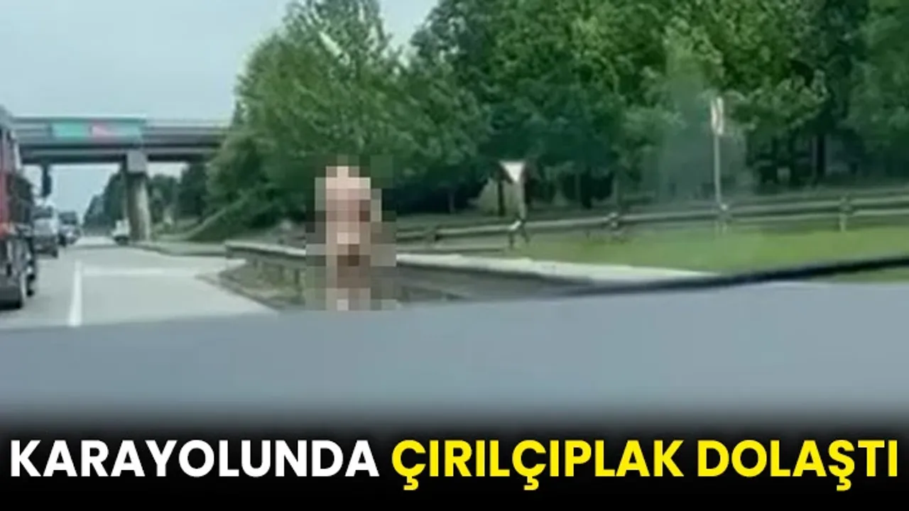 Kocaeli D130 Karayolu'nda bir şahıs, üstünü çıkararak çırılçıplak dolaştı. O anlar vatandaşların cep telefonuna yansıdı.