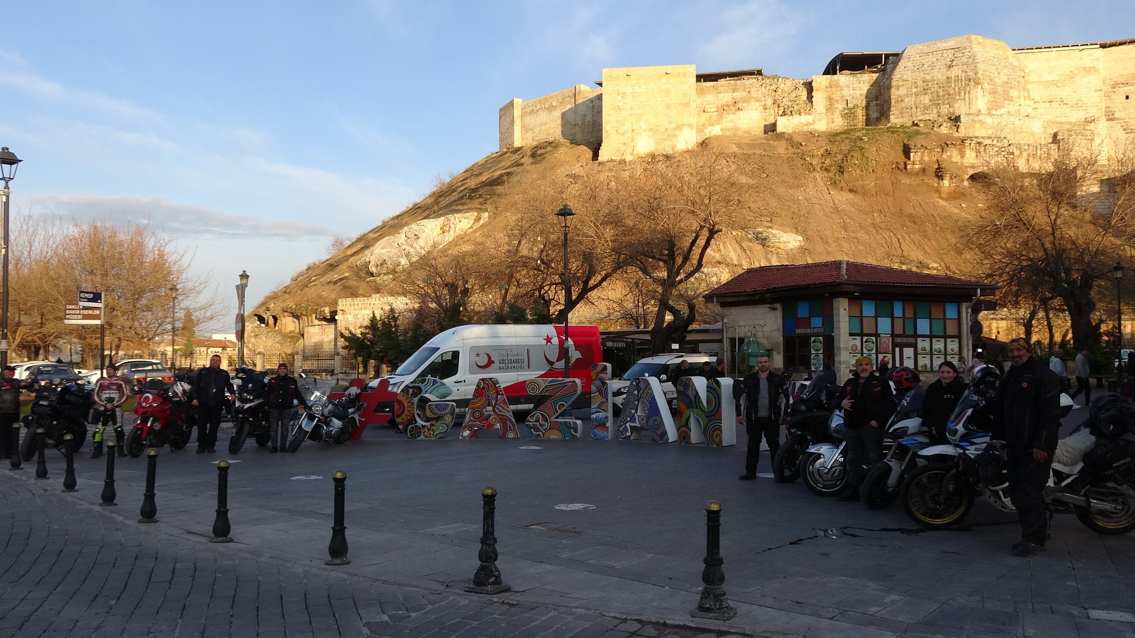 Motosiklet tutkunları, 500 yıllık Kaleoğlu Mağarası başta olmak üzere kentin tarihi mekanlarını gezdikten sonra Kilis üzerinden Suriye'ye geçiş yaparak Suudi Arabistan'ın Mekke şehrine doğru yola çıktı.