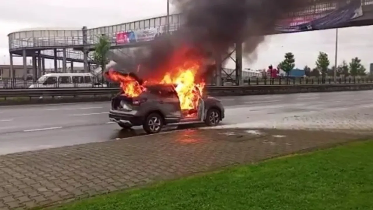 Lüks cip alev topuna döndü: Kadın sürücü şans eseri kurtuldu