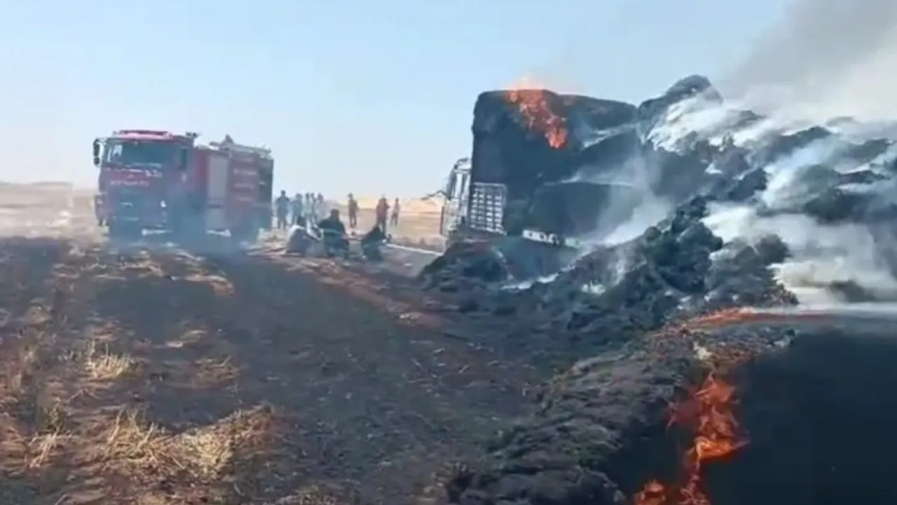 Mardin’de tır ve tonlarca saman balyası cayır cayır yandı