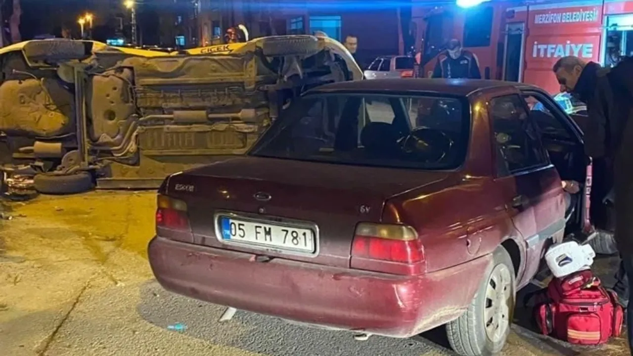 Amasya’nın Merzifon ilçesinde ticari taksi ile otomobilin çarpıştığı kazada 3 kişi yaralandı.Edinilen bilgiye göre, akşam saatlerinde Mahsen Mahallesi Halim Seyit Efendi Caddesi’nde N.G yönetimindeki 05 T 5145 plakalı ticari taksi ile V.K’nın kullandığı 05 FM 781 plakalı otomobil çarpıştı. Kazada yan yatan ticari taksinin sürücüsü ve yolcu V.K ile diğer otomobildeki N.C.Ö hafif şekilde yaralandı.Kazanın bildirilmesi üzerine olay yerine polis, acil sağlık ve itfaiye ekipleri sevk edildi. Yaralılar ambulanslarla hastaneye kaldırıldı. Kazayla ilgili inceleme başlatıldı.
