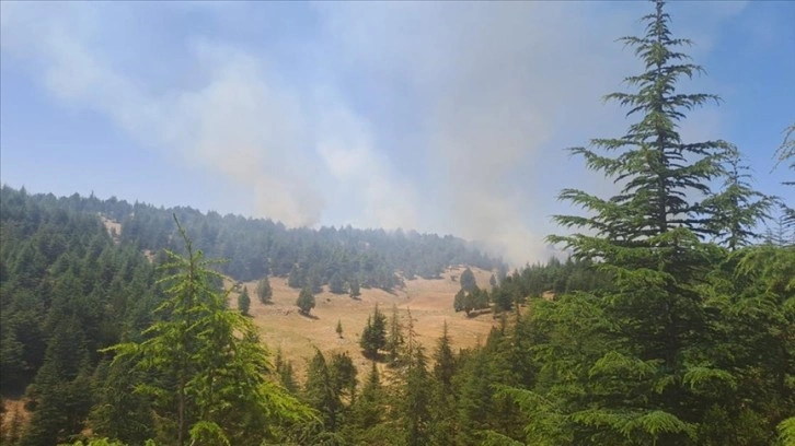 Adana'nın Saimbeyli ilçesinde çıkan orman yangını, havadan ve karadan müdahaleyle kontrol altına alınmaya çalışılıyor.