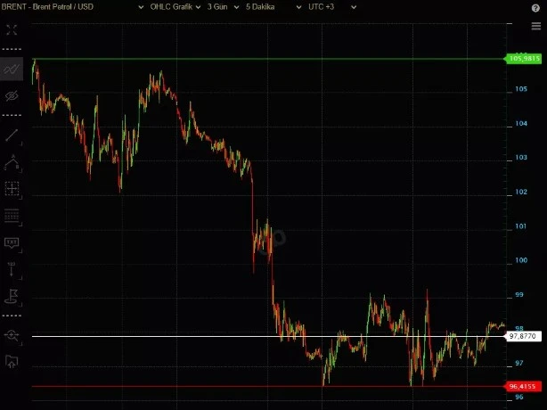 Brent petrolün varil fiyatı önceki kapanışa göre yüzde 0,15 azalışla 99,34 dolar oldu. Aynı dakikalarda Batı Teksas türü ham petrolün varili 95,78 doları gördü.