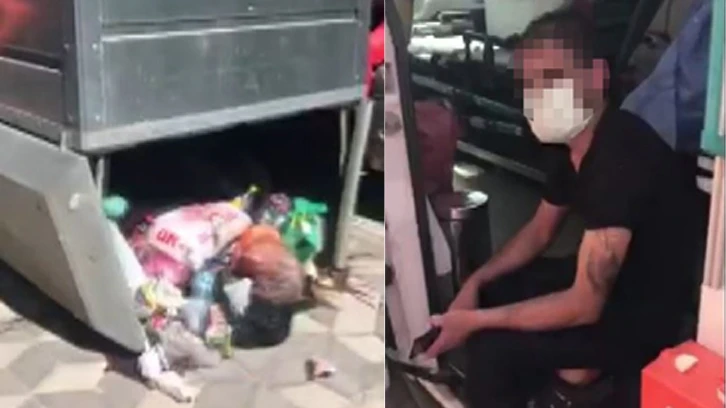 Gömme konteynere düşen şahsı itfaiye kurtardı, o anlar cep telefonu kamerasına yansıdı