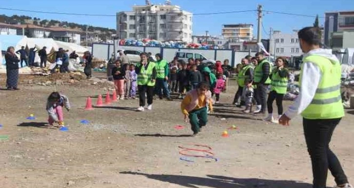 Kahramanmaraş merkezli depremde Adıyaman şehir merkezinin yanı sıra ilçeleri de hasar gördü. Bir çok bina ve evin yıkıldığı, çocuğunun ise ağır hasar aldığı Kahta'daki yaşayan bir grup genç, Adıyaman merkezdeki çocukları yalnız bırakmadı. Deprem psikolojisini yaşayan gençler, Kahta'daki çocuklarla birlikte çeşitli sokak oyunları oynadıktan sonra Adıyaman şehir merkezine geldi. Çatısı altında birleştikleri derneğin desteğiyle çadırların kurulduğu alanları gezen gençler, müzik eşliğinde çocuklarla çeşitli oyunlar oynadı.