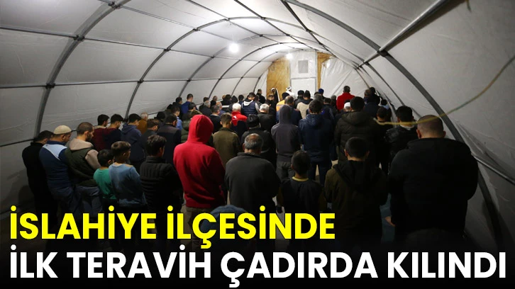 Pazarcık ve Elbistan merkezli 7,7 ve 7,6 büyüklüğündeki depremlerden etkilenen Gaziantep'in İslahiye ilçesinde hasar gören Sıdıka Tayyar Hatun Camisi bahçesine kurulan çadır mescitte, afetzedeler ilk teravih namazını kıldı.