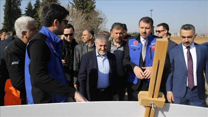 Depremzedeler için AFAD tarafından Ulubağ Mahallesi'nde 114 dönüm üzerinde yapımına başlanan bin 84 konteynerden oluşacak kentin çalışmalarını yerinde inceleyen Nebati, içerisinde okul, cami, sağlık ocağı ve çocuk oyun alanlarının bulunacağı alanla ilgili yetkililerden bilgi aldı.