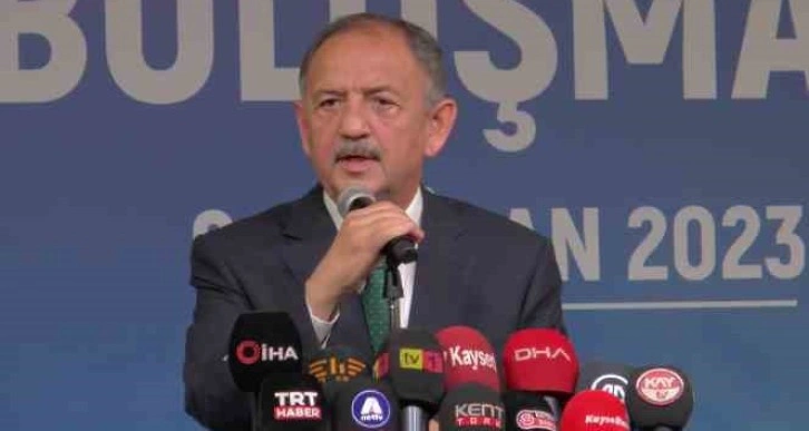 “Birçok sorun yaşadıktan sonra bir de deprem afetiyle karşı karşıya kaldık. Adına asrın afeti deniyor ama şunu herkes bilsin bu topraklarda kurduğumuz bin yıllık medeniyetin karşılaştığı en büyük afet olsa gerek. 11 tane ilimiz, 14 milyon insan bundan etkilenmiş. 100 kadar ilçemiz, bine yakın köyümüz ve dün aldım rakamları 680 bin konut yıkılmış. 170 bin de iş yeri, depo, ahır yıkılmış. Yani 850 bin tane bizim yapmak zorunda olduğumuz ev ve iş yeri var. Bunların altyapısı da yapılacak. Bunların hepsinin maddi zararı 100 milyar dolar civarında. İnsanların bir kısmı çadırdalar, bir kısmı konteyner kentteler. Oradan da haliyle bir an önce çıkmak istiyorlar. Evlerimizi yapın verin diyorlar. Bunlar için değişik formüller var. O formülleri geliştiriyoruz zaten. İnşallah söz verdiğimiz gibi 300 binden fazla konutu bir yıl içinde, ondan sonraki 1 buçuk 2 yıla kalmadan da bütün konutları bitirip herkesi evlerine kavuşturacağız. Benim bulduğum yeni formüller de var. Çarşamba günü kabine toplantımız var, Sayın Cumhurbaşkanımıza arz edeceğim. Eğer arkadaşlarımız da uygun görürlerse o formüller devreye girdiğinde çok daha kısa süre içerisinde inşallah bütün hak sahiplerinin haklarını vermiş olacağız ve helalleşmiş olacağız.”