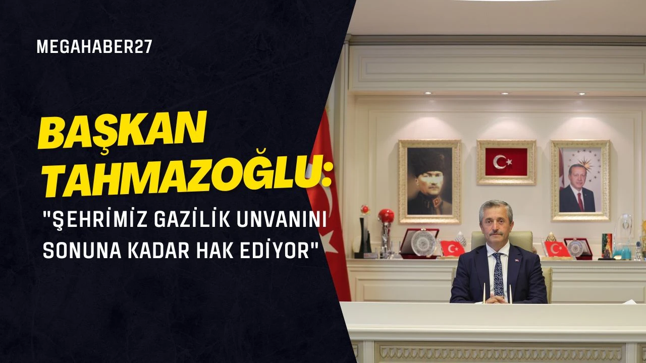 Kentin Kurtuluş Savaşı’nda verdiği 6 bin 317 şehit ile "Gazilik" unvanını hak ettiğini ifade eden Başkan Mehmet Tahmazoğlu, "Bu şehrin halkı, ülkemiz işgal altındayken milli mücadele ateşini yakan; namusunu, toprağını ve bayrağını savunmak için muhteşem bir direniş destanı yazan unutulmaz bir halktır. Bu halk ki millet olmanın ve geleceğe güvenle bakmanın bedelini kanıyla canıyla ödemiştir. Antep halkı, hiçbir yerden destek almadan düşman işgaline karşı yaptığı savunma ile Kurtuluş Savaşı'nın ilk kıvılcımını ve Milli Mücadelemizin meşalesini yaktı. Vatan sevgisi, bağımsızlık aşkı, inanç ve kararlılıkla mücadele eden Antep halkı, Şahinbey'lerin, Şehitkamil'lerin, Karayılan'ların ve daha nice adsız kahramanların öncülüğünde, 6 bin 317 şehit verme pahasına bu şehri düşman işgalinden kurtarmışlardı. Gaziantep, Gazilik unvanını fazlasıyla hak eden, değerli şehitlerimizin, gazilerimizin, o mücadeleyi gören, yaşayan ve bilen insanlarımızın dünyaya tanıttığı kahramanlık destanının sahibidir. Gaziantep'in düşman işgalinden kurtuluşunun 104. yıl dönümünü kutluyor, vatan topraklarının düşman işgalinden kurtarılması yolunda aziz canlarını feda eden şehitlerimizi rahmet, gazilerimizi saygıyla anıyorum" dedi.