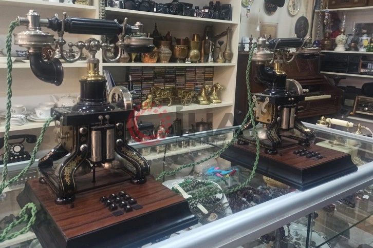 Demirciler Çarşısı'ndaki bir antika dükkanında 100 yıl öncesine ait antika telefonlar gelecek kuşağa aktarılıyor. Antika telefonlara meraklılarının yoğun ilgisinin olduğunu belirtilirken, fiyatlarının ise 400 TL ile 10 bin TL arasında değiştiği öğrenildi.