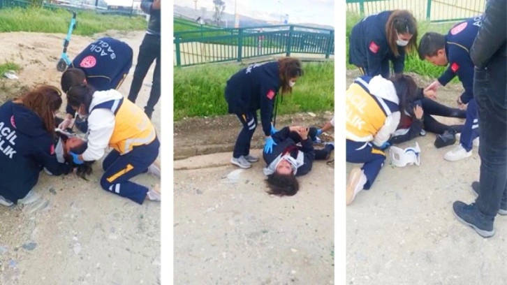 Yere düşerek yaralanan genç kızın yardımına bölgede bulunan vatandaşlar koştu.