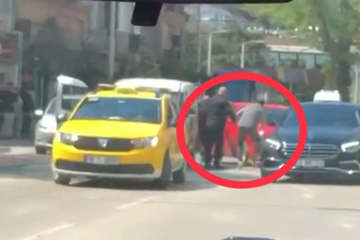 Olay, merkez Osmangazi ilçesi Altıparmak Caddesi üzerinde meydana geldi. Edinilen bilgiye göre, iki sürücü arasında yol verme meselesi yüzünden tartışma çıktı. Tartışma kısa sürede büyürken sürücüler birbirlerine vurmaya başladı. Çevredeki vatandaşların araya girmesiyle kavga yatıştırıldı. Sürücülerden biri aracına binerek bölgeden uzaklaştığı sırada kavga ettiği sürücüyü az daha eziyordu. Yere düşen sürücü hafif yaralanırken o anlar kameralara saniye saniye yansıdı.