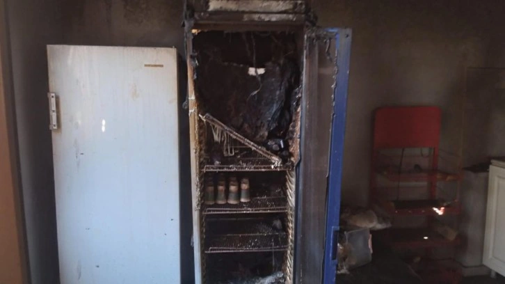 Murat Nehri kıyısındaki bir balık evinin mutfağında bulunan buzdolabı, iş yerinde kimsenin bulunmadığı sırada henüz belirlenemeyen nedenle patladı.