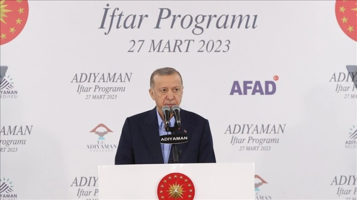 Cumhurbaşkanı Erdoğan, 6 Şubat'ta meydana gelen Kahramanmaraş merkezli depremlerden etkilenen Adıyaman'da, İpekli-3 Otogar Konteyner ve Prefabrik Kent'teki depremzedelerle iftar yaptı.