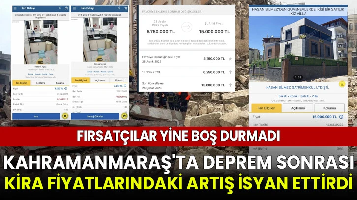 Depremzedelerin yaşadığı bir başka sorun ise emlak firmaları ve ev sahiplerinden oldu. Deprem sonrası kent genelinde kiralık konut fiyatları adeta fırladı. Evleri ağır hasarlı ve yıkık durumda olan aileler, devletin sağladığı kira desteğinden de faydalanarak yeni bir yuva arayışına girerken, kentte kira fiyatları katlandı.