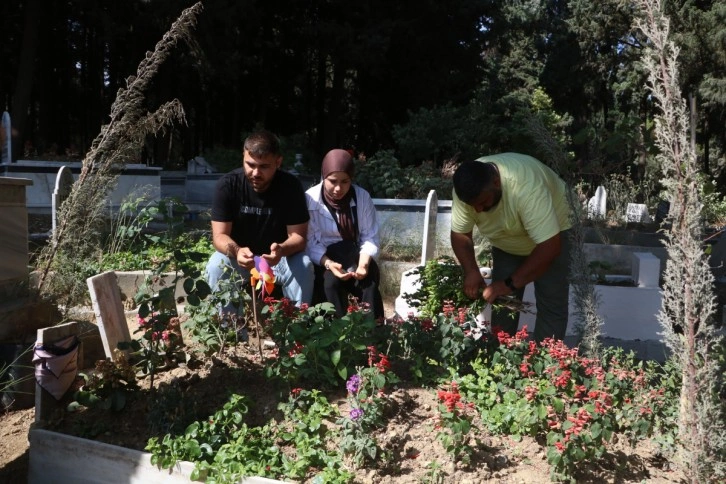 6 Şubat Kahramanmaraş merkezli depremlerde en büyük yıkım 11 il içinde Hatay'da yaşandı. Kentte binlerce kişi hayatını kaybederken, yüzlerce insan ailesiz kaldı. Acının ilk günkü gibi tazeliğini koruduğu Hatay'da Babalar Günü'nde mezarlıklarda yine hüzün hakimdi. Sessizliğin yer aldığı mezarlıklar önünde birkaç çiçekçi ve az sayıda ziyaretçi olduğu görüldü. Bu ziyaretçilerden birisi ise 25 yaşındaki Mustafa Karaman ve 18 yaşındaki kız kardeşi Melisa Karaman oldu. Karaman kardeşlerin yaşadığı bina 6 Şubat depreminde yıkıldı. Enkazda baba Kudret, anne Sabriye, ikiz kardeşler Savaş ve Ömer ile anneanne hayatını kaybetti. Mustafa ve Melisa kardeşler ise 3 gün sonra hafif yaralı olarak kurtarıldı. Birbirlerine tutunup acılarını saran iki kardeş, depremden sonraki ilk Babalar Günü'nde mezarlığa ziyarete geldi. Kardeşleri ve anne, babalarının kabirlerine çiçek bırakıp dua eden kardeşler duygusal anlar yaşadı. Gözyaşlarını tutamayan kardeşler, duanın ardından mezarlıktan ayrıldı.